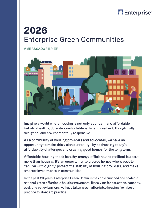 Over the course of two decades, Enterprise Green Communities has transformed the quality of affordable housing in America, with residents and communities at the center, driving and inspiring our work. The 2026 edition builds on 20 years of experience, engagement, and community care. The 2026 edition centers three themes: