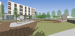 A new extension to Edgewood Commons will introduce 150 homes designed to encourage aging in place in adaptable, accessible living and recreational spaces. The new homes will feature access to transportation and community amenities including healthcare, social services, and houses of worship. The design of the building will emphasize a healthy, comfortable indoor environment, and the site will offer a fitness area and spaces for community gatherings.